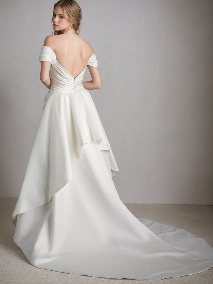A Line/Princess Off-the-shoulder Short Sleeve Asymmetrical Elegant Wedding Dresses