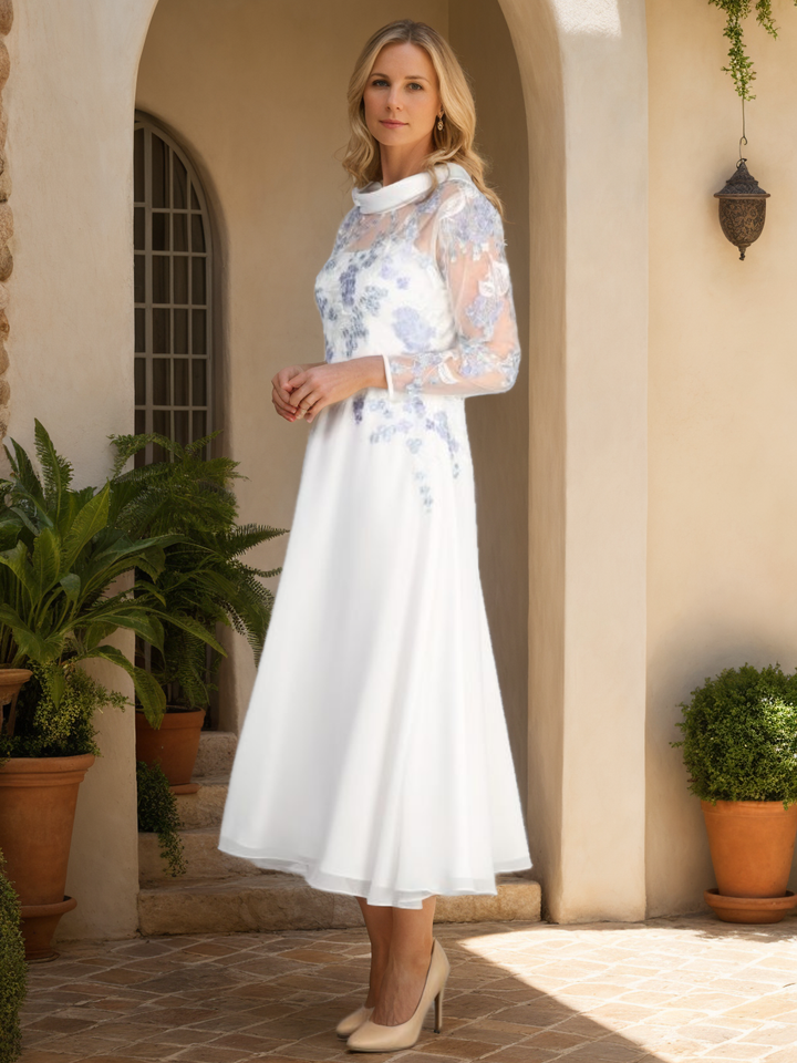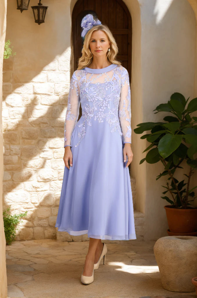 A Line/Princess Lace Long Sleeves Tea-Length Mother of the Bride Dresses With Appliques