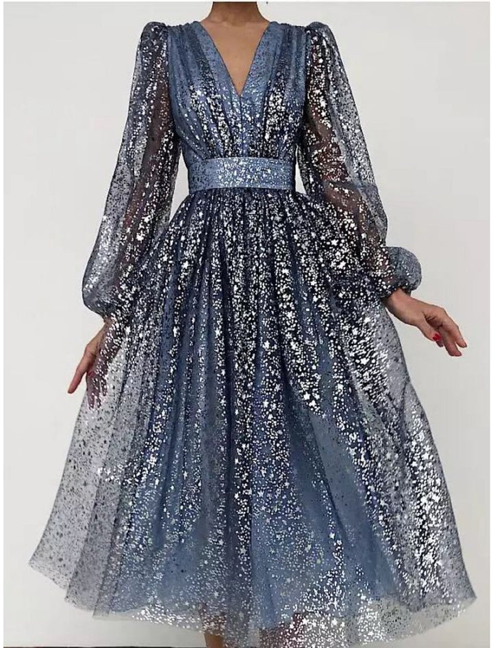 A Line/Princess V Neck Long Sleeves Wedding Guest Dress Midi Dress