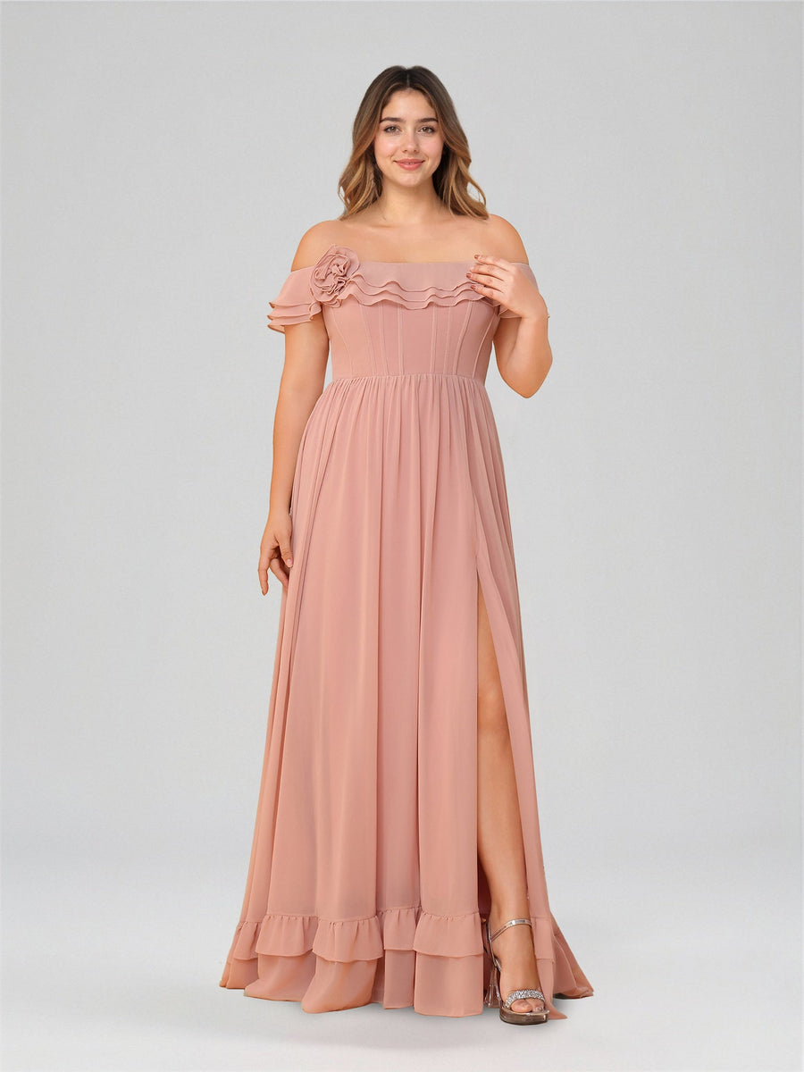 A-Line/Princess Square Neck Sleeveless Floor-Length Chiffon Plus Size Bridesmaid Dresses with Split Side & Ruffles