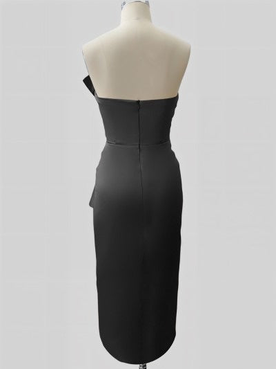 Sheath/Column Strapless Sleeveless Tea-Length Ruched Bridesmaid Dresses with Slit