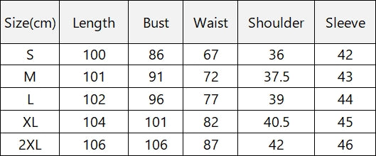 Size(cm) Length Bust Waist Shoulder Sleeve