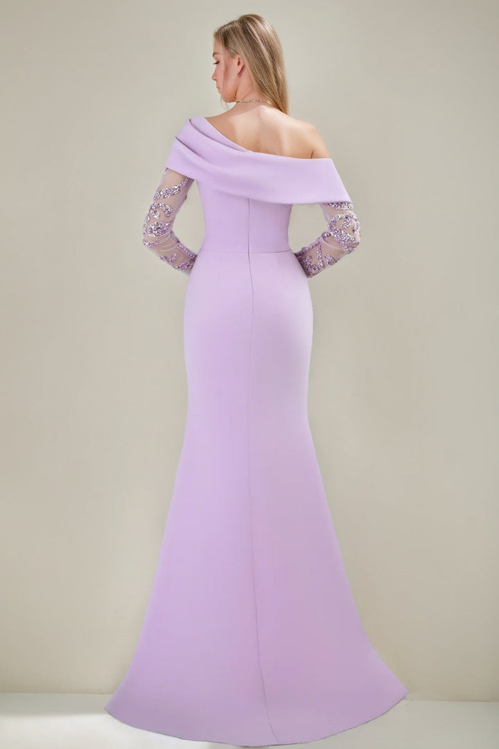 Mermaid/Trumpet Off-the-shoulder Long Sleeves Ruched Evening Dresses with Split Side