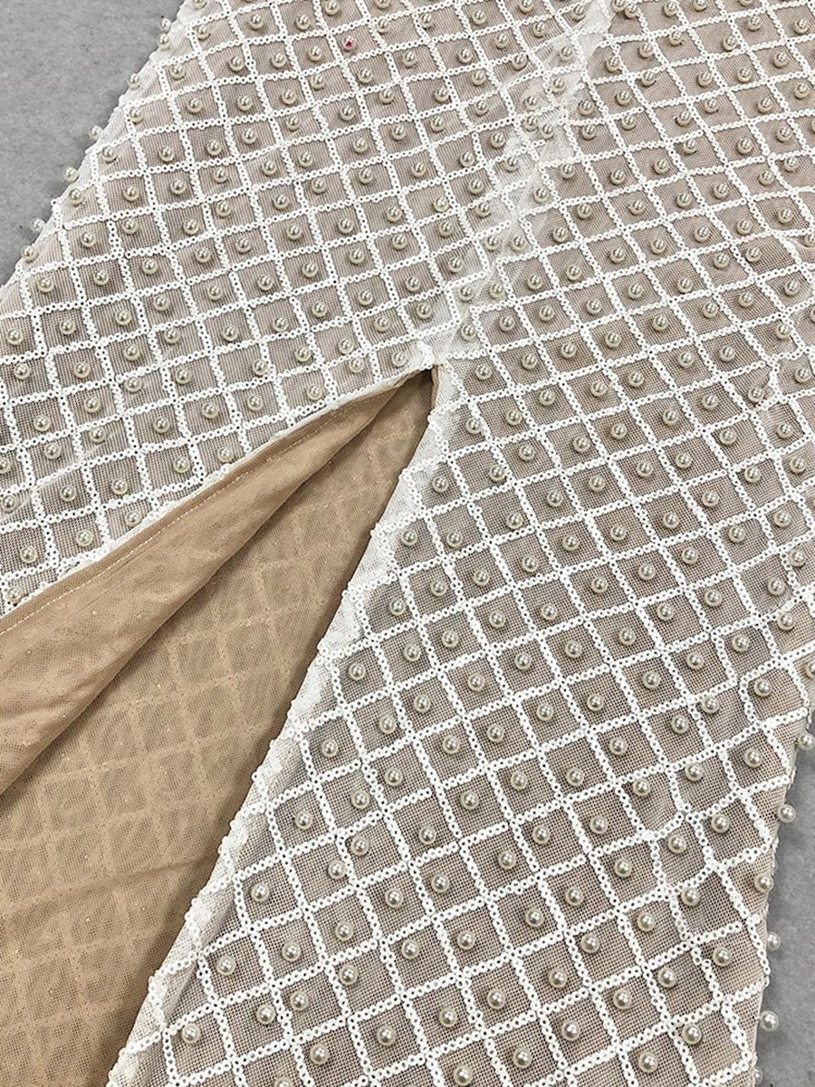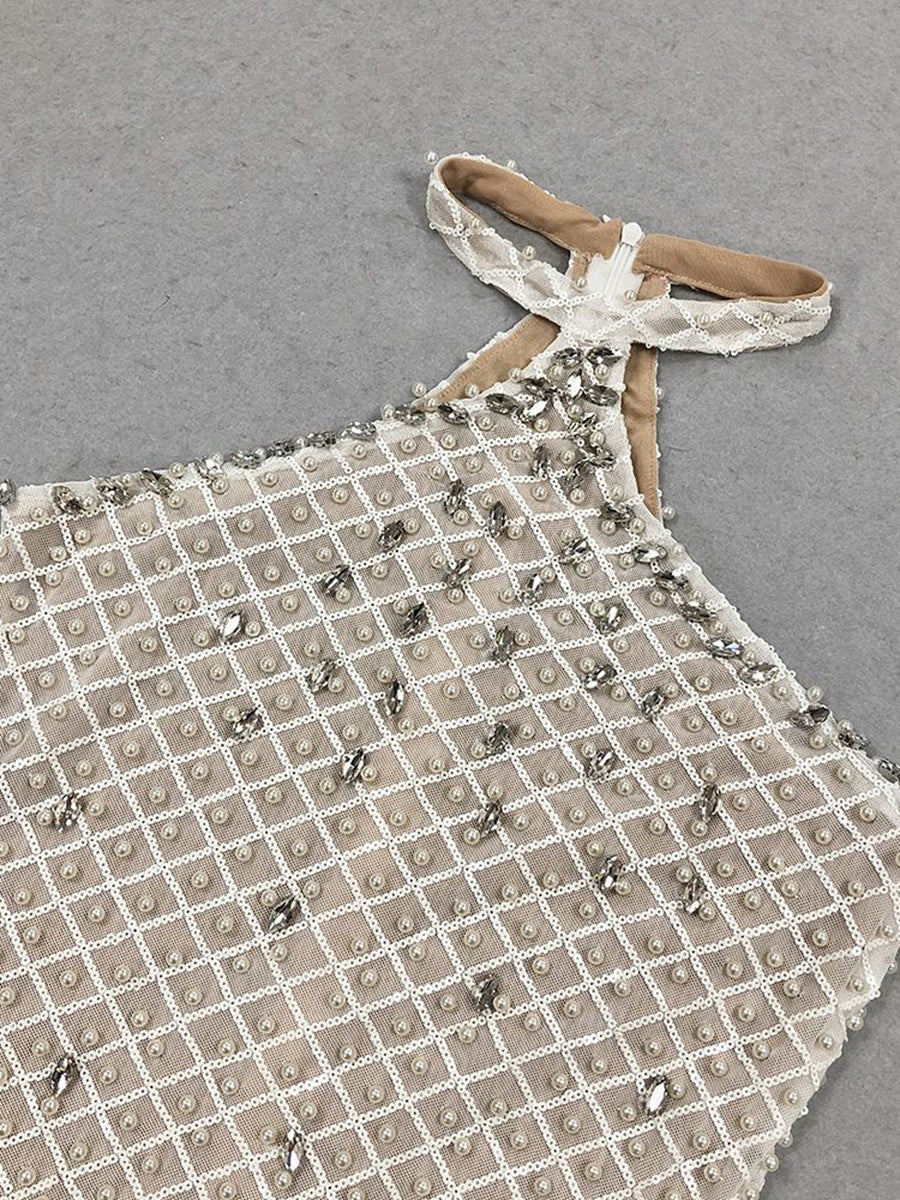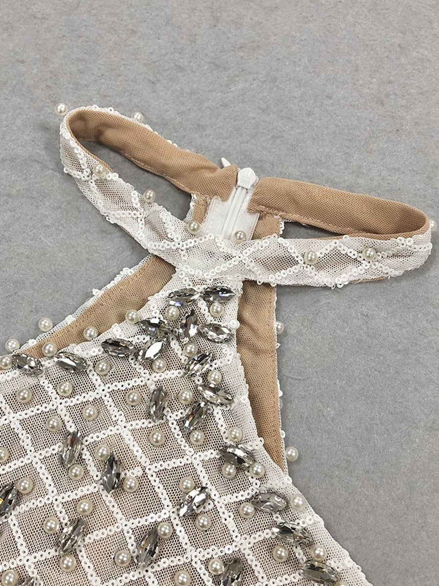 MON342551W Sheath/Column Halter Sleeveless Elegant Sequined Prom Dresses with Pearl & Back Split