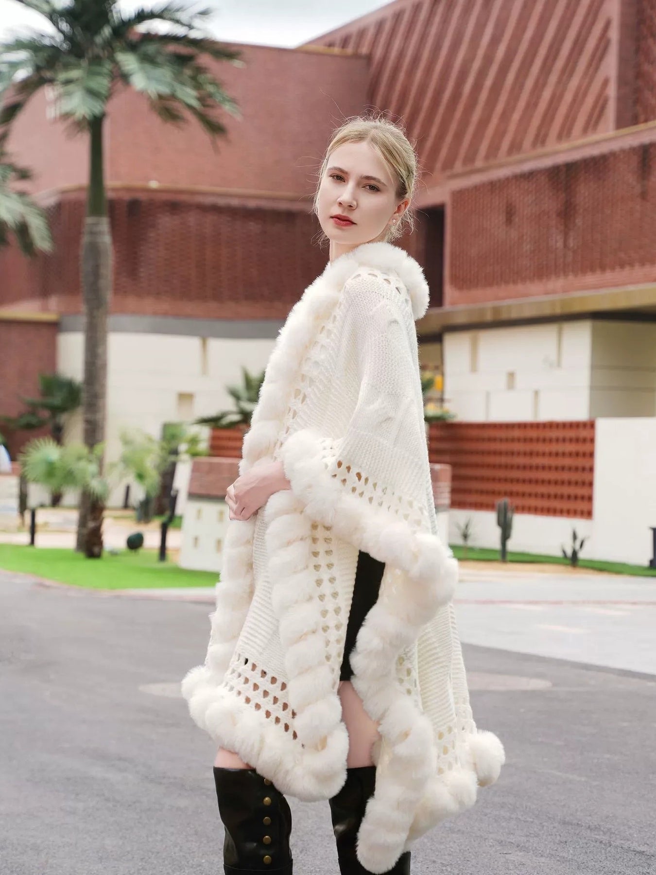 MON9041093W Women's Autumn/Winter Hollow Knit Cape Shawl/Wrap