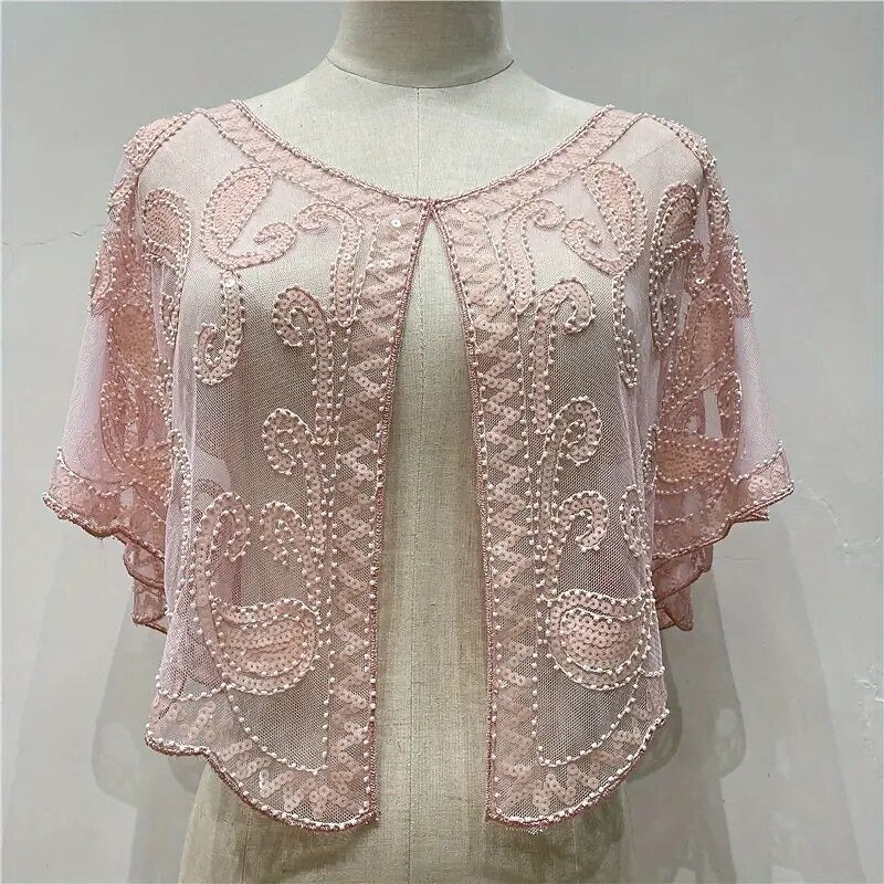 Women's Wrap Cape Vintage Sleeveless Sequind Solid colour Wraps with Beadings