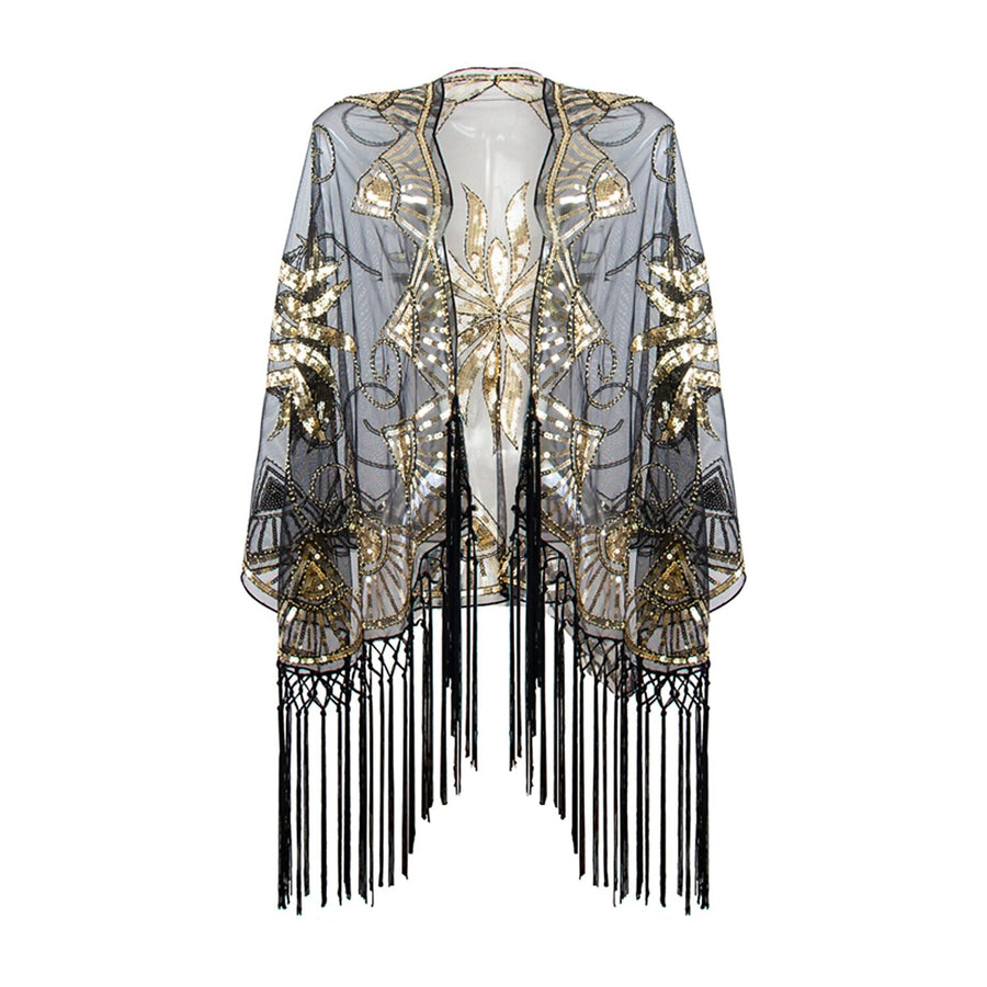 Women's Sequins Tassel Fringe Vintage Dress Cape Wrap Shawls
