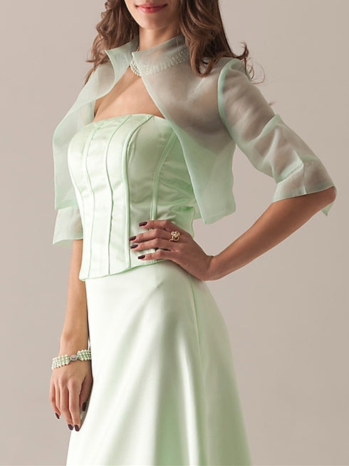 Elegant Coats / Jackets Half Sleeves Organza Wedding Wraps With Pure colour