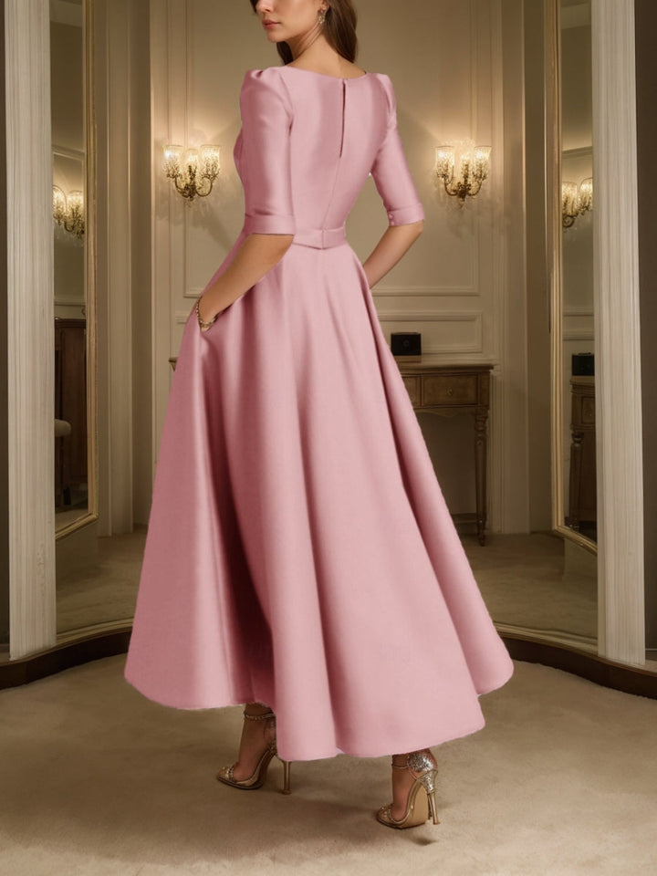 A-Line/Princess V-Neck Satin Mother of the Bride Dresses Half Sleeves Ankle-Length Formal Dresses