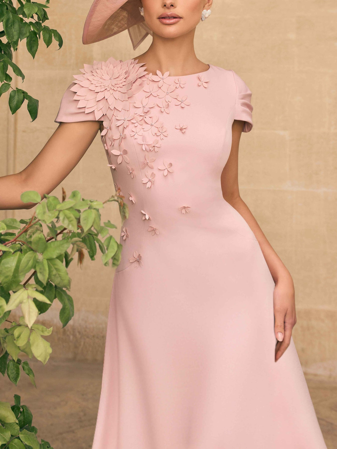 MONK2312592 A-Line/Princess Round Neck Tea-Length Mother of the Bride Dresses with 3D Flowers