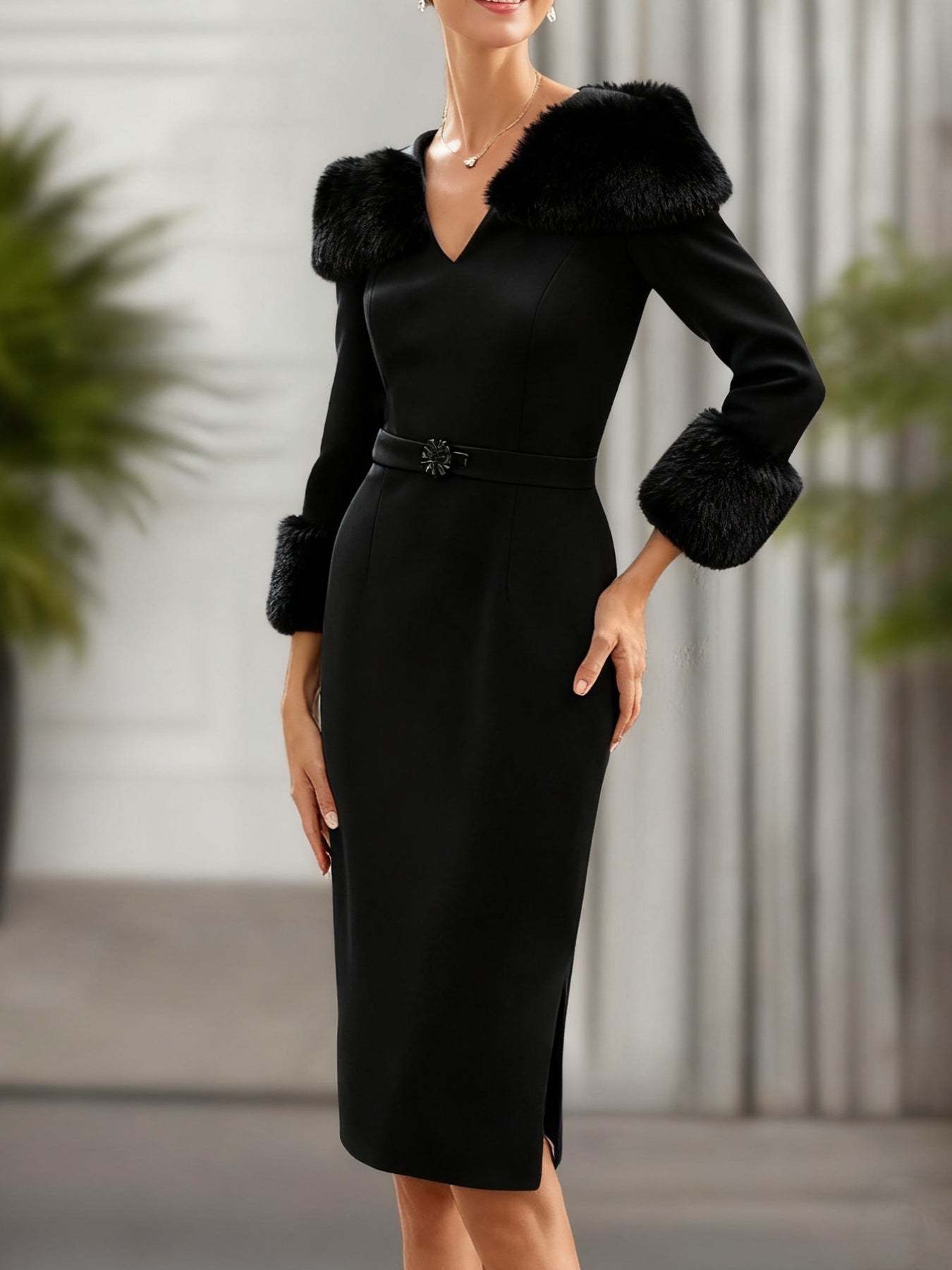 MON2311943 Sheath/Column V-Neck 3/4 Length Sleeves Knee-Length Unique Mother of the Bride dresses