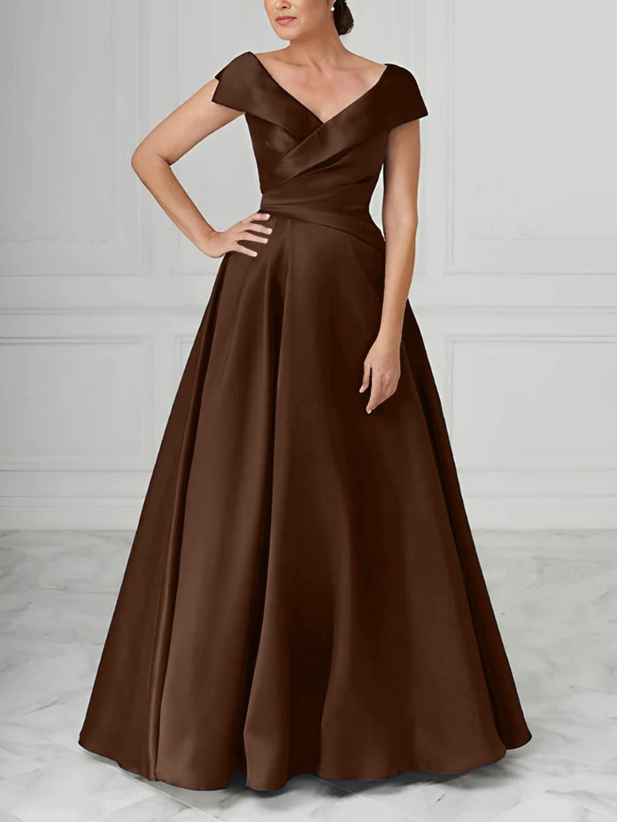 A-Line/Princess V-Neck Satin Mother of the Bride Dresses with Ruched