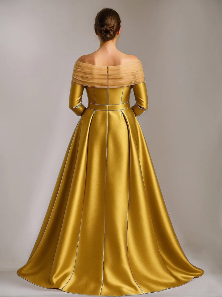 A-Line/Princess Shirt Collar Long Sleeves Floor-Length Mother of the Bride Dresses with Appliques & Flower Belt