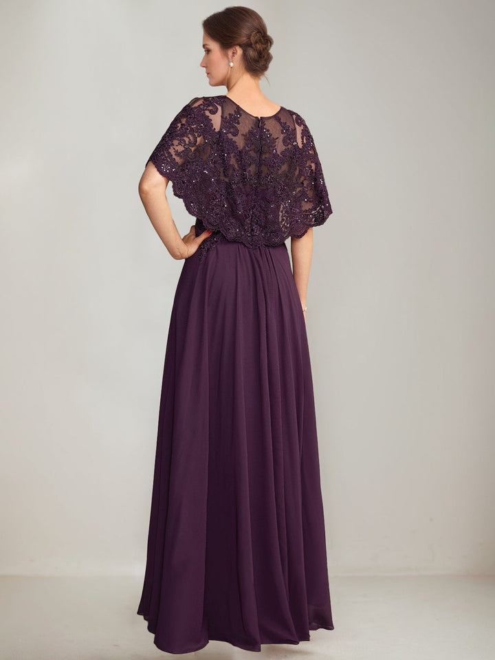 A-Line/Princess Scoop Cape Sleeves Floor-Length Pleated Mother of the Bride Dresses with Lace Appliques & Sequins