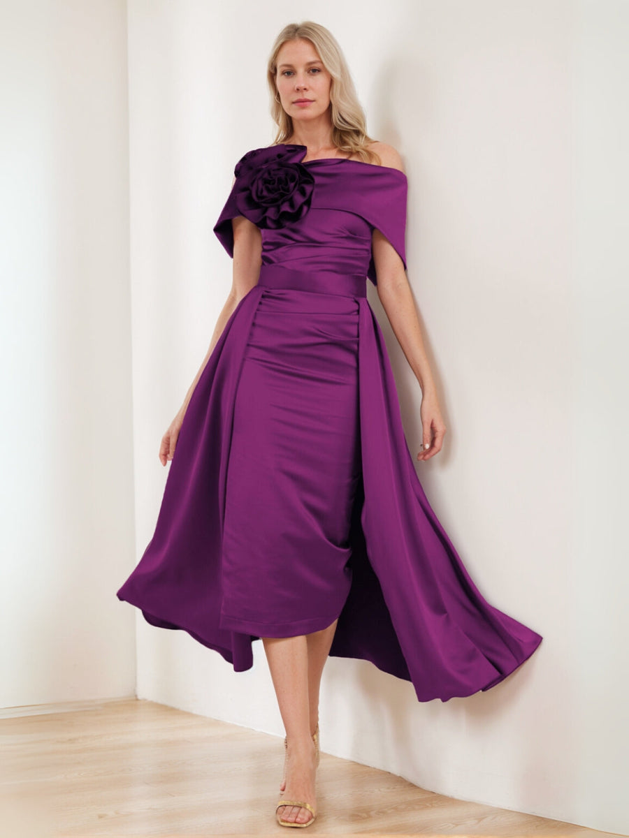 Sheath/Column Satin Knee-length Sleeveless Off-The-Shoulder Bow(s) Mother of the Bride Dresses