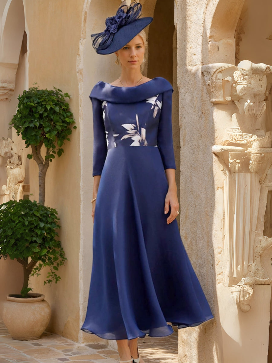 A-Line/Princess Chiffon Ankle-Length 1/2 Sleeves Scoop Mother of the Bride Dresses
