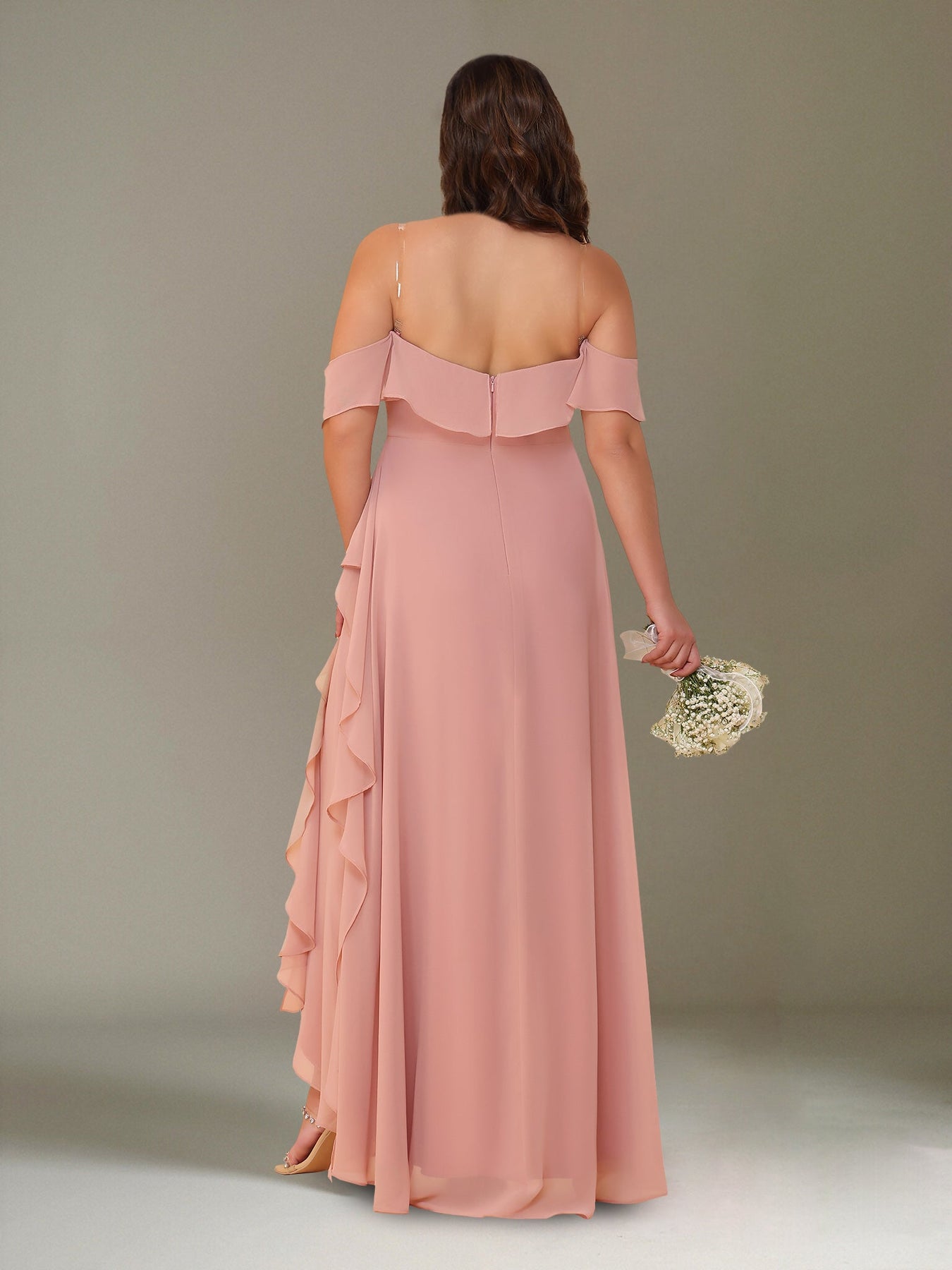 MON5412273P A-Line/Princess Off-the-Shoulder Asymmetrical Chiffon Plus Size Bridesmaid Dresses with Ruffles