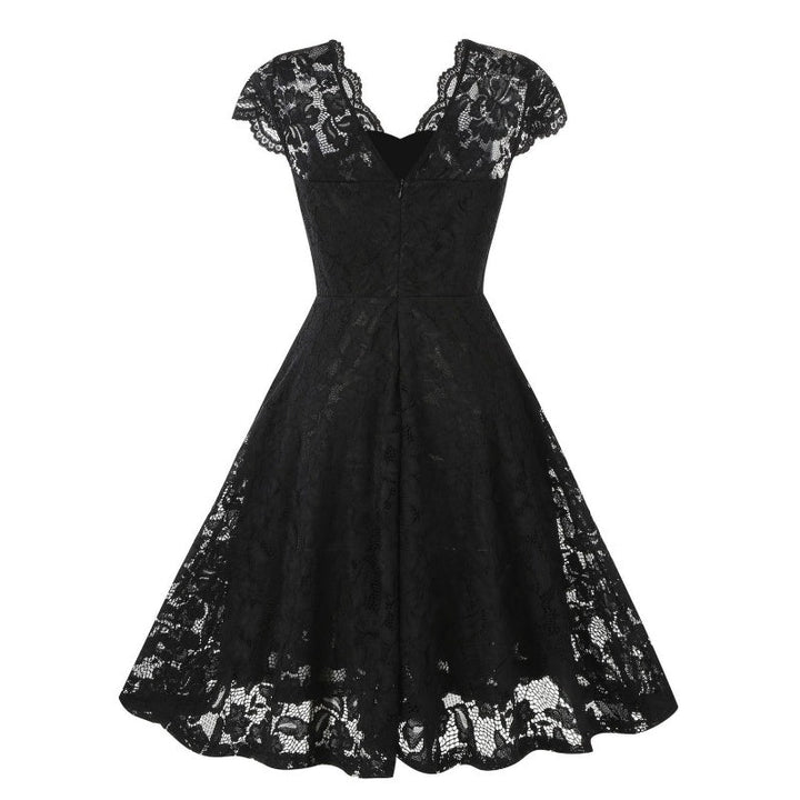 A-Line/Princess 1950s V-Neck Short Sleeves Vintage Dresses with Lace Appliques