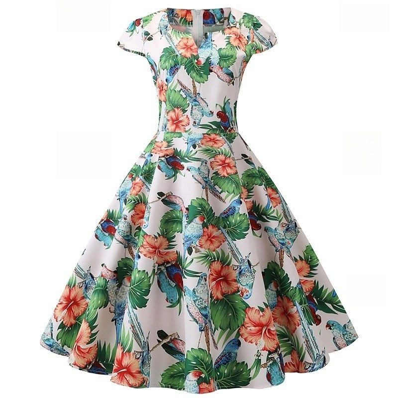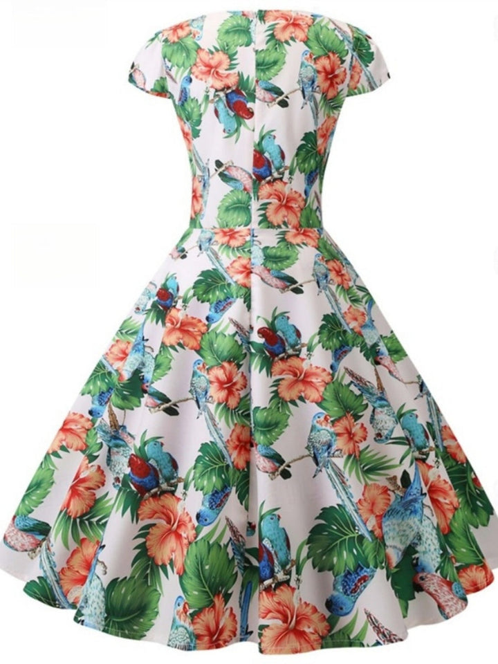 A-Line/Princess 1950s Scoop Short Sleeves Printed Floral Vintage Dresses