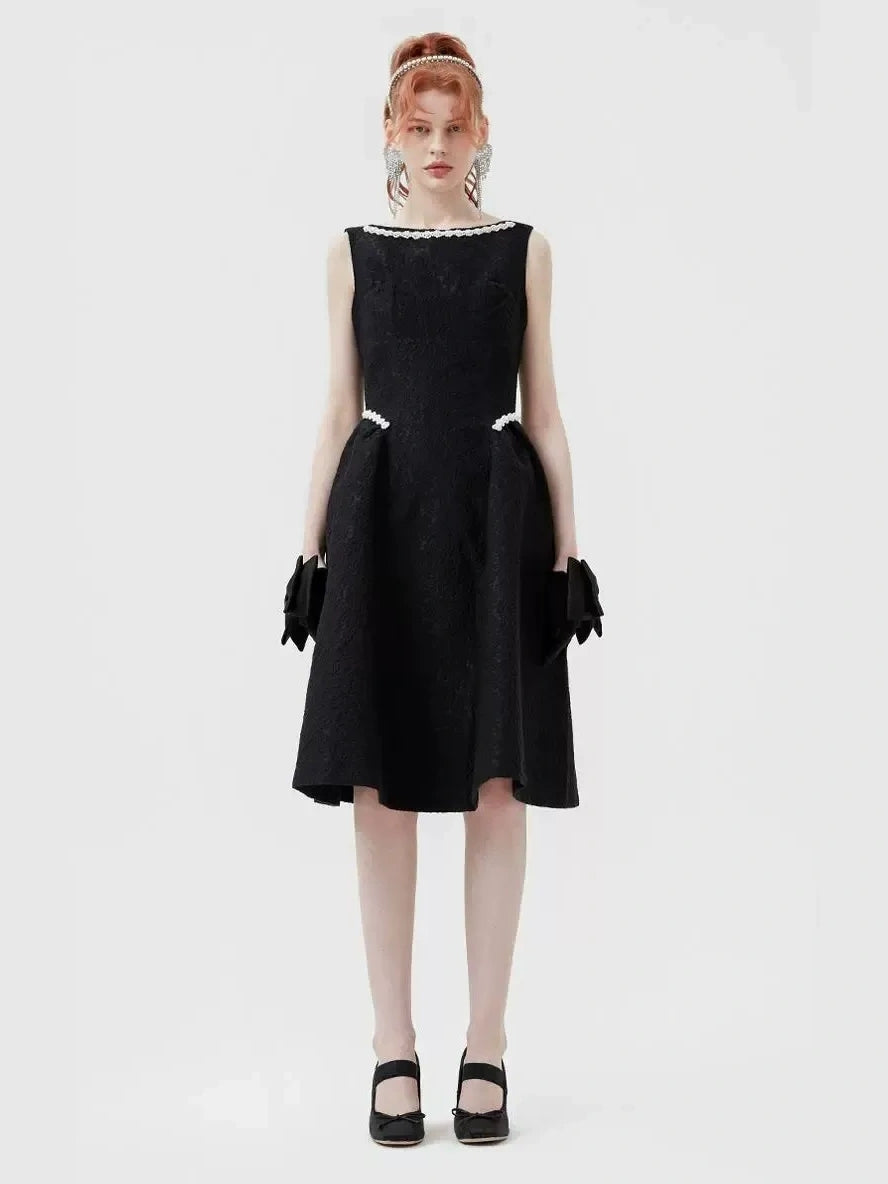 A-Line/Princess Scoop Sleeveless Knee-Length Vintage Dresses with Bow Pockets & Pearls