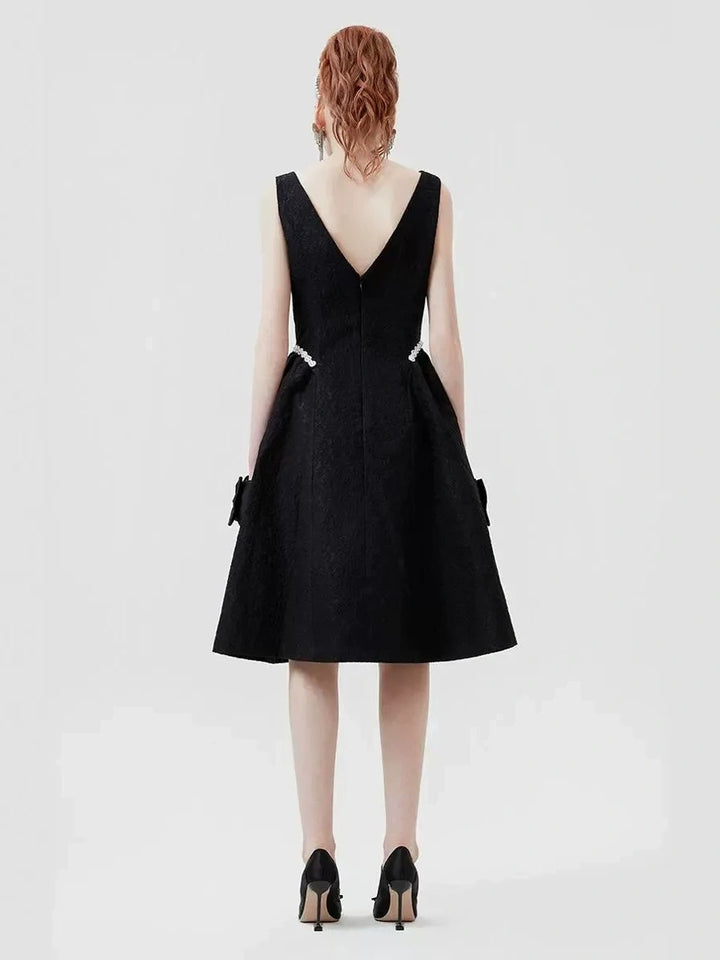A-Line/Princess 1950s V-Neck Sleeveless Pleated Vintage Dresses with Bow Belt