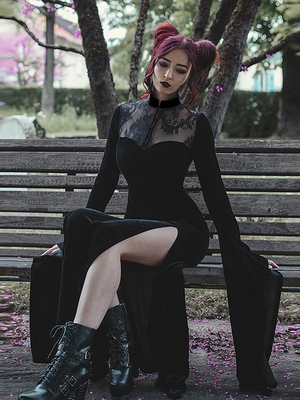 A-Line/Princess Jewel Neck Long Sleeves Floor-Length Vintage Dress with Split Side