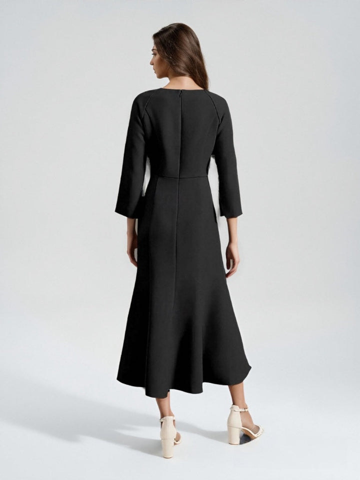 A-Line/Princess V Neck 3/4 Length Sleeves Tea-Length Wedding Guest Dress with Pleats