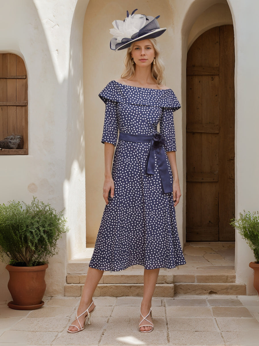 A-Line/Princess Off-the-Shoulder Bardot Tea-Length Mother of the Bride Dresses with Sash