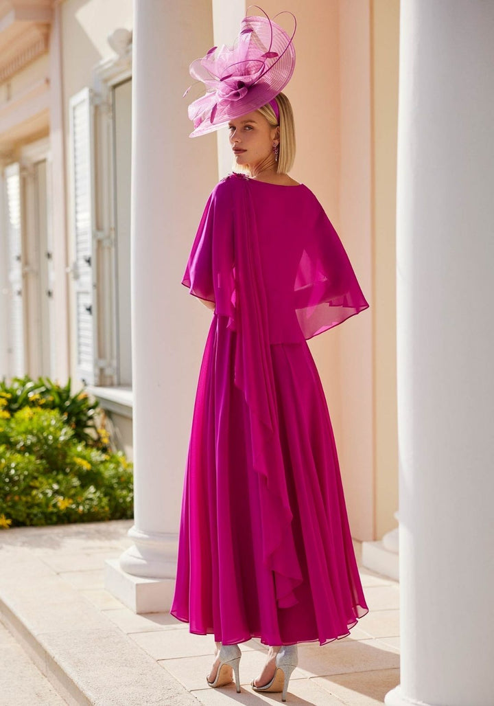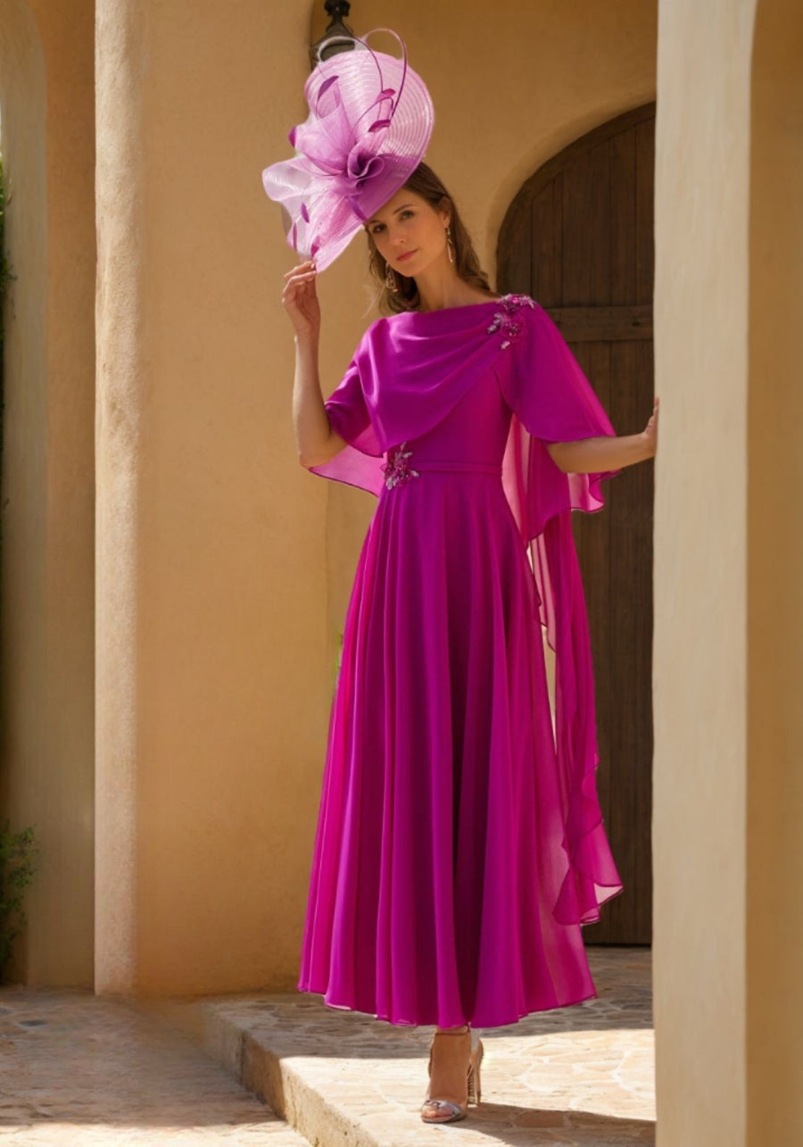 A-Line/Princess Chiffon Wedding Guest Dresses Cape Bateau Neckline