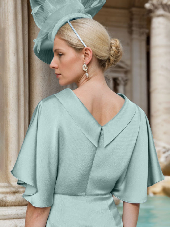 Sheath/Column V-Neck V-Back Ankle-Length Cape Sleeves Wedding Guest Dresses with Shawl