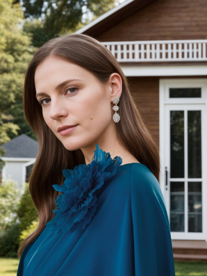 A-Line/Princess Off the shoulder Half Sleeves Ankle-Length Wedding Guest Dresses with 3D Flower