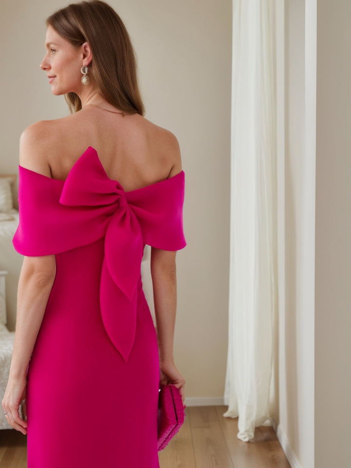 Sheath/Column Off-the-Shoulder Floor-Length Wedding Guest Dresses with Bow on the Back