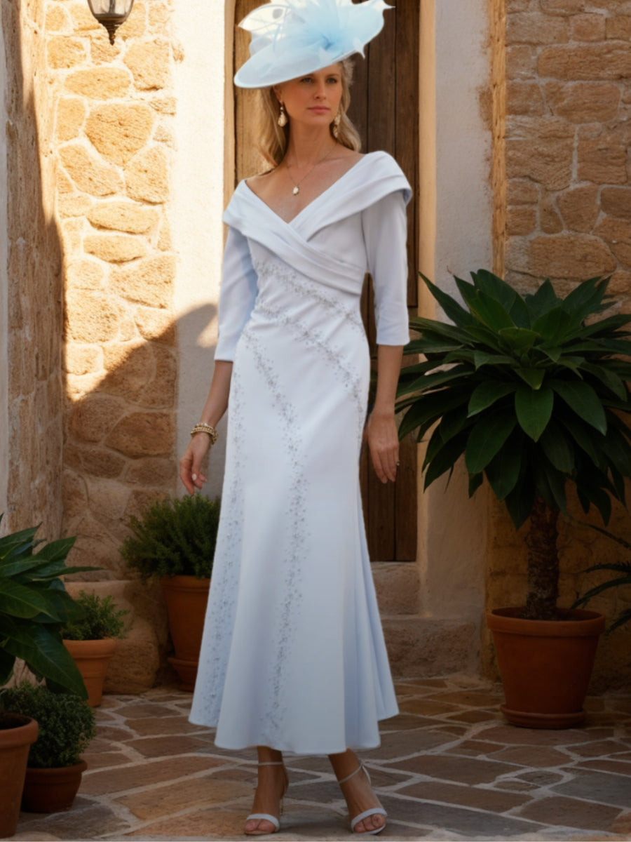 Sheath/Column V-back Wedding Guest Dresses Asymmetrical Ankle-Length
