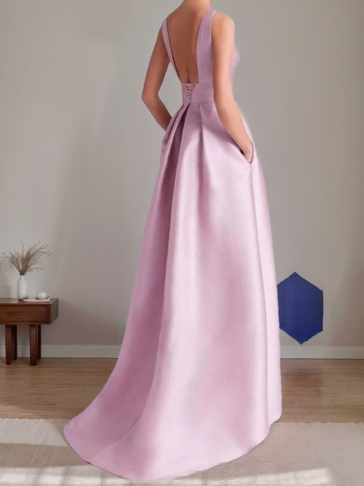 A-Line/Princess V-Neck Floor-length Long Bridesmaid Dresses
