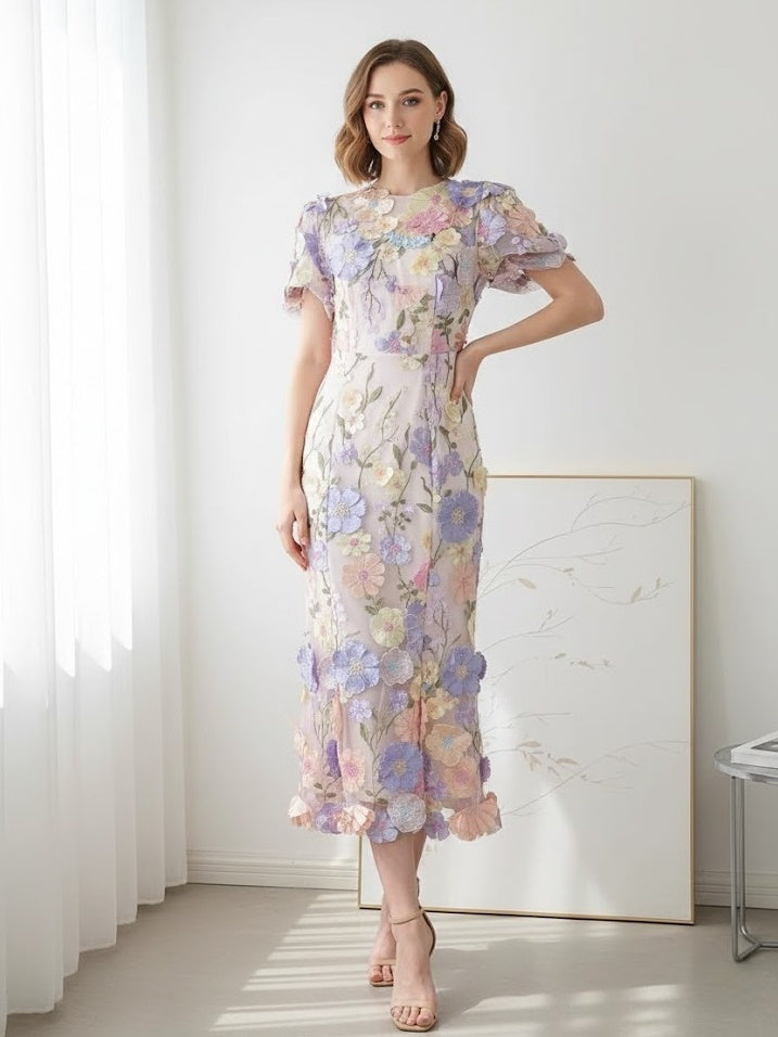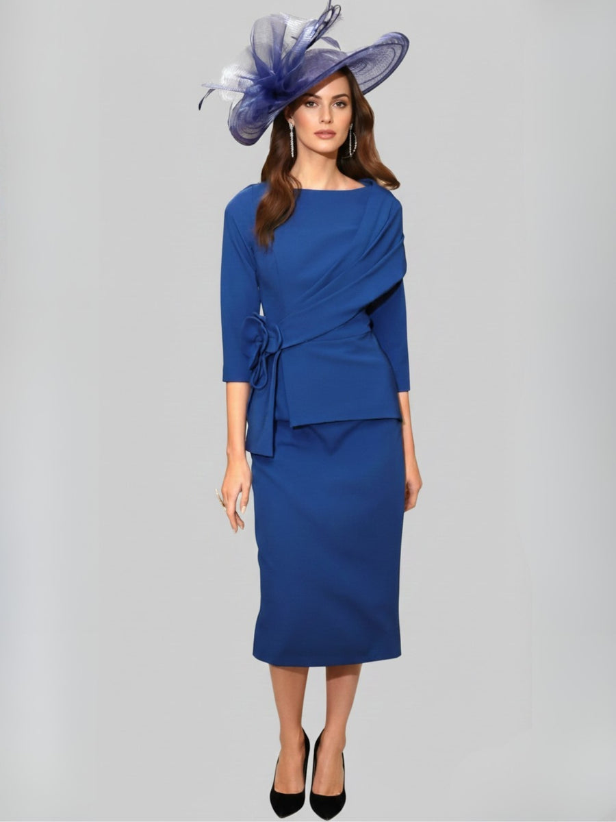 Sheath/Column Scoop Tea-Length Mother of the Bride Dresses with 3D Flower