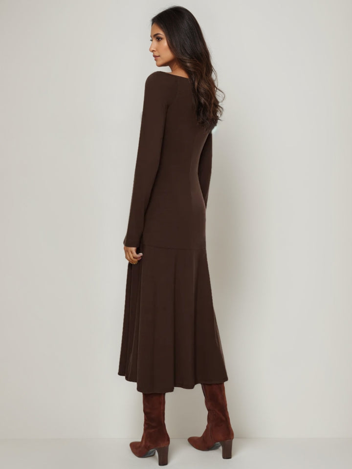 A-Line/Princess Bateau Neck Long Sleeves Wedding Guest Dresses Tea-Length
