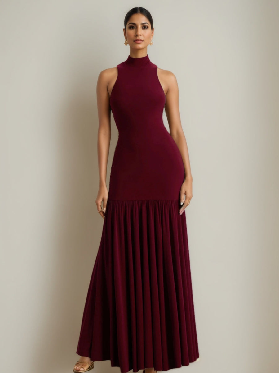 Sheath/Column Stretch Satin High Neck Wedding Guest Dresses Sleeveless Floor-Length