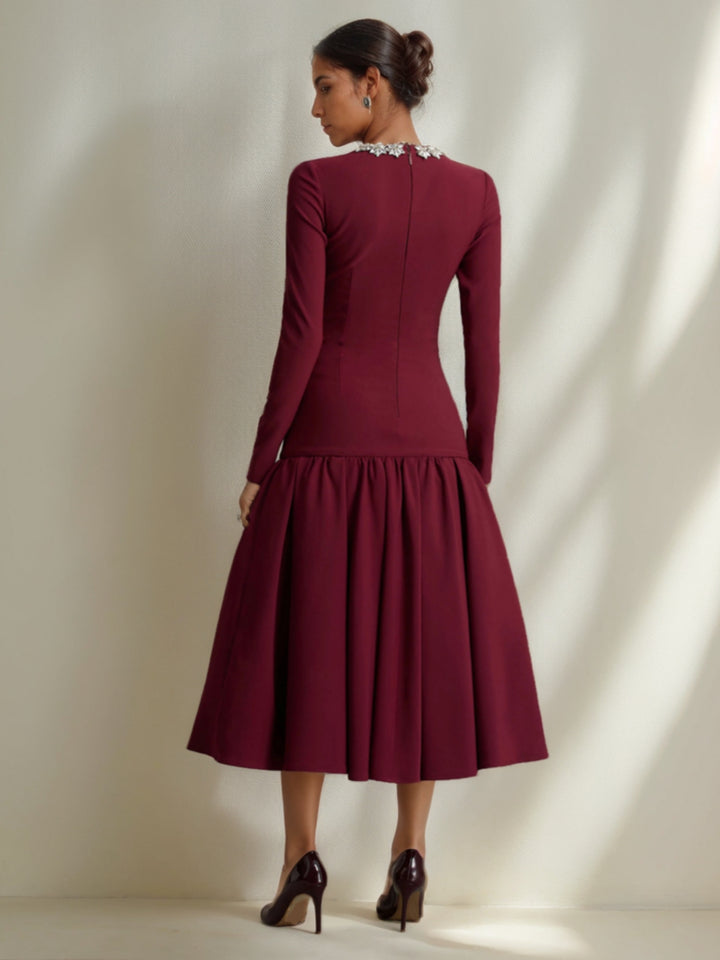 A-Line/Princess Crew Neck Long Sleeves Wedding Guest Dresses Tea-Length Rhinestones