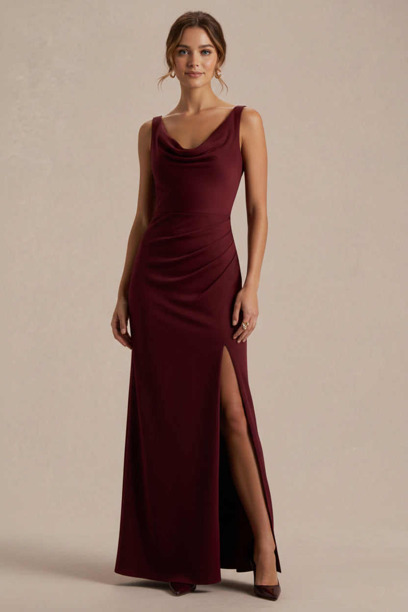 Trumpet/Mermaid Cowl Neck Chiffon Wedding Guest Dresses Side Slit Ankle-Length Sleeveless