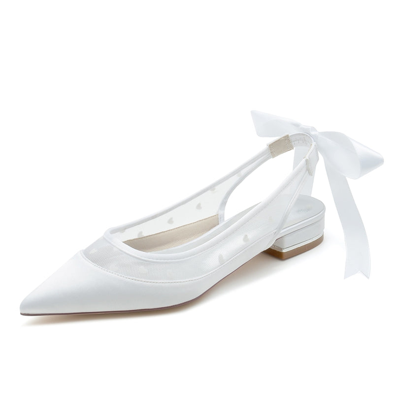 Women's Wedding Shoes Pointed Toe Exquisite Knit Bridal Shoes with Crossed Strap