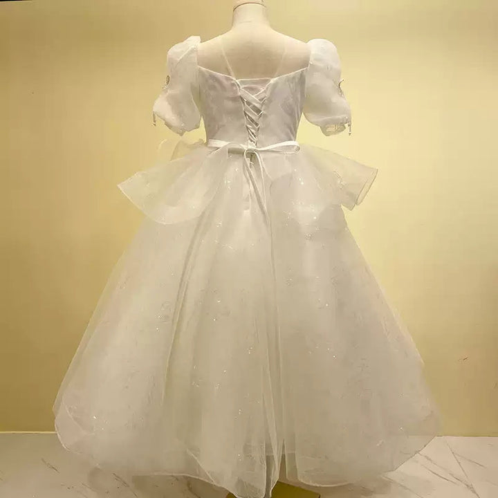Ball Gown Square Neck Short Sleeves Flower Girl Dress with Rhinestone Appliques