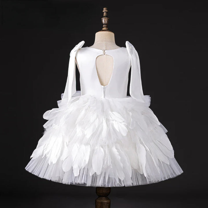 A-Line/Princess Round Neck Sleeveless Elegant White Flower Girl Dress with Feathers & Bow