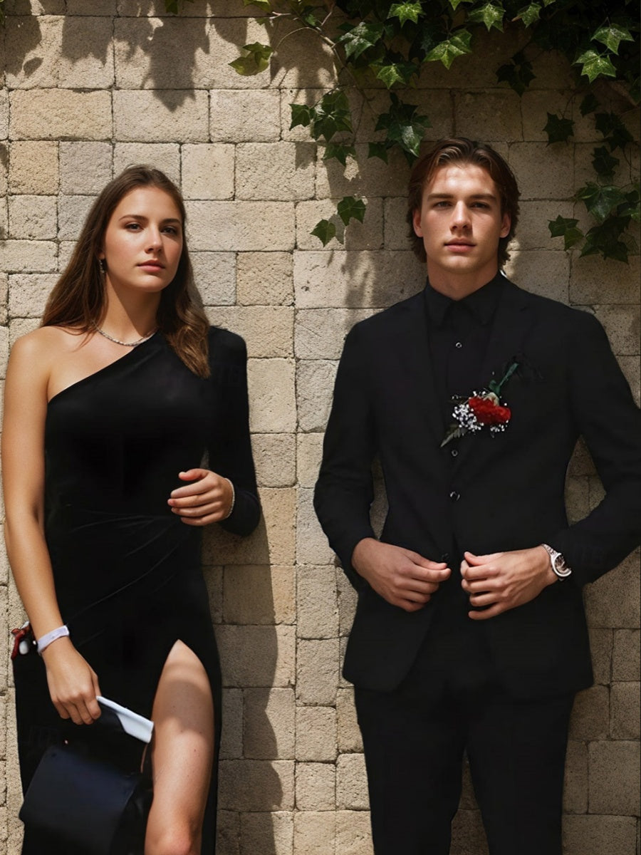 MON342520 Sheath/Column One-shoulder Ruched Floor-Length Prom Dresses with High Split