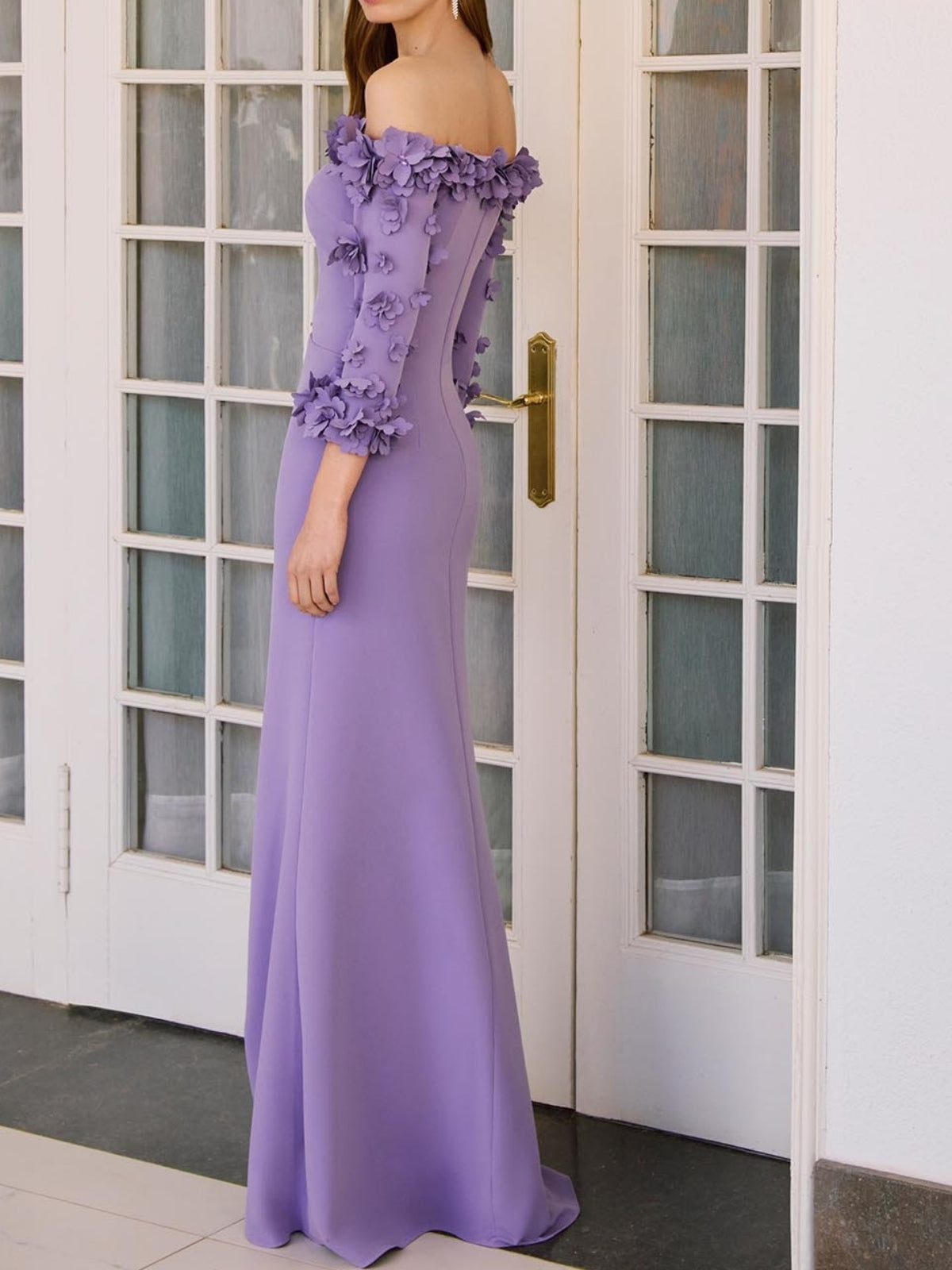 MONK2312530 Trumpet/Mermaid Off-the-Shoulder Floor-Length 3/4 Sleeves Wedding Guest Dresses Floral