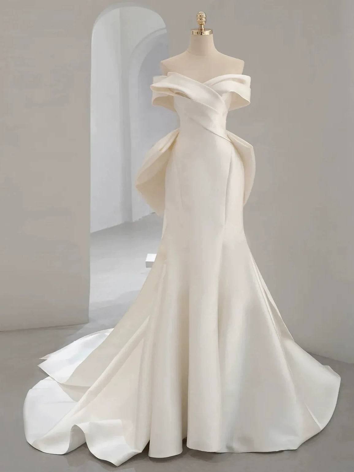 MON141640W Trumpet/Mermaid Off-the-shoulder Floor-Length Wedding Dresses with Bow